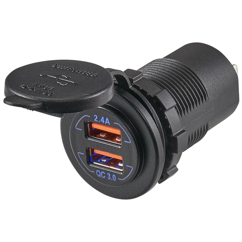 Die Accurat Dual USB-Einbaubuchse verfügt über zwei USB-Anschlüsse, sodass Sie zwei Geräte gleichzeitig aufladen können. Jeder Anschluss liefert einen maximalen Strom von 2,4A.