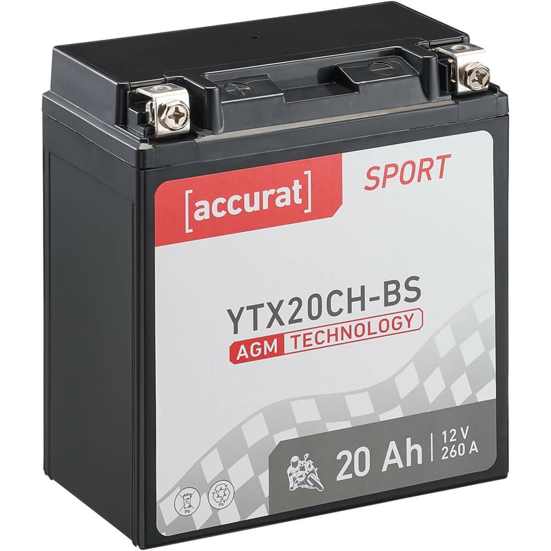 - Batterietyp: Überprüfe, welchen Batterietyp dein Motorrad benötigt. Die Accurat Sport AGM YTX20CH-BS ist eine YTX20CH-BS Batterie.