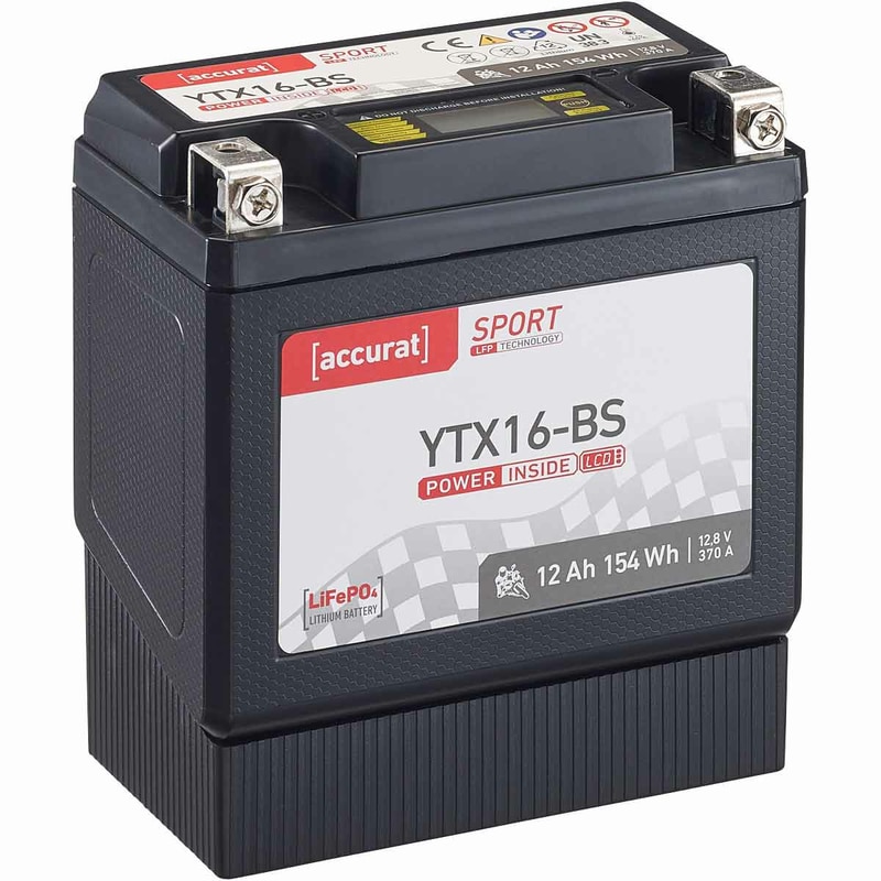 Die Accurat Sport LFP YTX16-BS ist mehr als nur eine Batterie – sie ist eine Investition in deine Leidenschaft. Entwickelt für anspruchsvolle Motorradfahrer, die keine Kompromisse eingehen, bietet diese Lithium-Eisenphosphat-Batterie (LiFePO4) eine unschlagbare Kombination aus Leistung, Gewicht, Lebensdauer und Sicherheit. Verabschiede dich von herkömmlichen Blei-Säure-Batterien und tauche ein in die Welt der Lithium-Technologie. Spüre den Unterschied vom ersten Moment an.