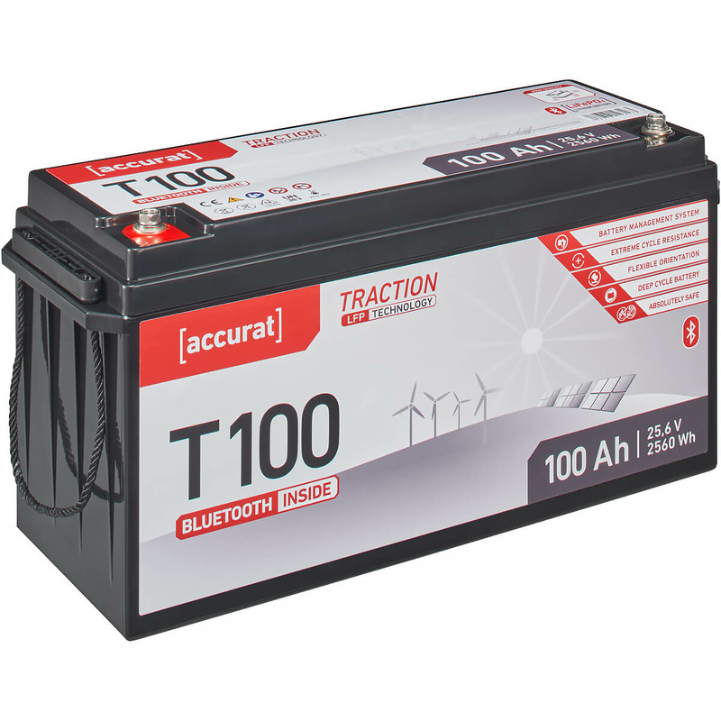 Die Accurat Traction T100 wurde entwickelt, um höchsten Ansprüchen gerecht zu werden. Ihre robuste Konstruktion und die Verwendung hochwertiger Materialien garantieren eine lange Lebensdauer und eine hohe Widerstandsfähigkeit gegenüber Vibrationen, Stößen und extremen Temperaturen. Egal, ob Sie durch die Wüste reisen, auf dem Meer unterwegs sind oder einfach nur eine zuverlässige Energiequelle für Ihre Solaranlage benötigen – die Accurat Traction T100 lässt Sie nicht im Stich.