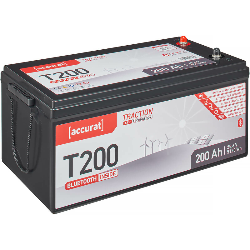 Willkommen in der Zukunft der Energieversorgung! Entdecken Sie die Accurat Traction T200 LFP BT 24V LiFePO4 Lithium Versorgungsbatterie – die ultimative Lösung für alle, die auf der Suche nach einer zuverlässigen, langlebigen und intelligenten Energiequelle sind. Diese Batterie ist mehr als nur ein Akku; sie ist Ihr Schlüssel zu Unabhängigkeit, Flexibilität und einem sorgenfreien Energieerlebnis. Ob für Ihr Wohnmobil, Ihr Boot, Ihre Solaranlage oder andere anspruchsvolle Anwendungen, die Accurat Traction T200 setzt neue Maßstäbe in Sachen Leistung und Sicherheit.