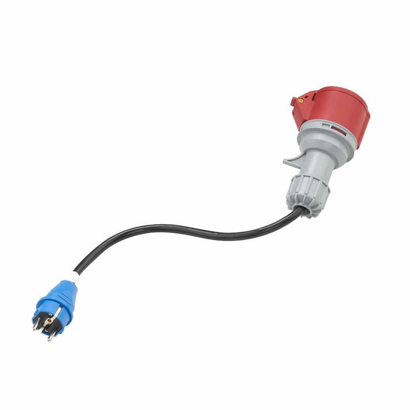 - Anschließen: Stecken Sie den CEE-Stecker des Adapters in die rote CEE 16A-Dose.