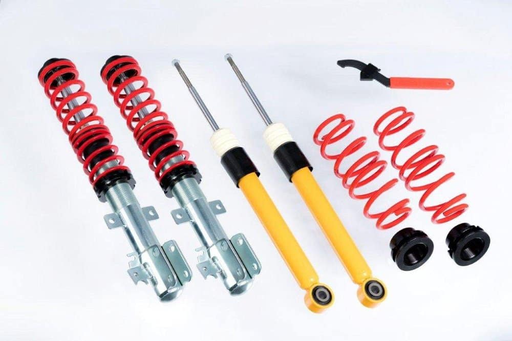 Im Lieferumfang sind die Gewindefederbeine für Vorder- und Hinterachse, die passenden Federn sowie ein Teilegutachten für die problemlose Eintragung enthalten.
