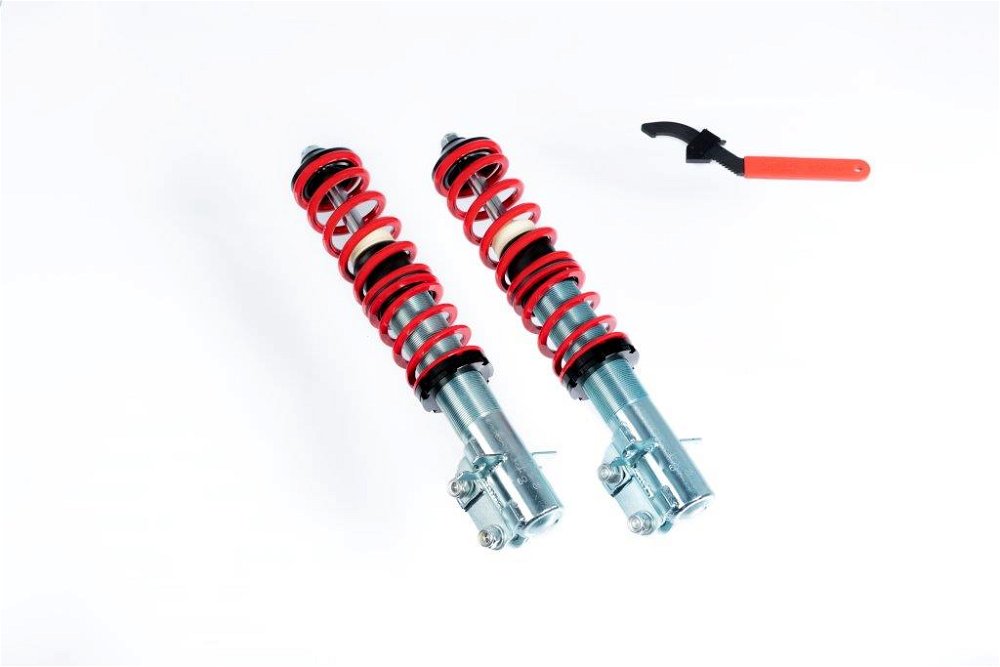 Ein Gewindefahrwerk ist ein Fahrwerk, bei dem die Höhe des Fahrzeugs stufenlos über ein Gewinde am Dämpfer verstellt werden kann. Dies ermöglicht eine individuelle Anpassung der Fahrzeughöhe und somit eine Optimierung der Optik und des Fahrverhaltens. Durch die Absenkung des Schwerpunkts verbessert sich die Straßenlage und das Handling des Fahrzeugs.